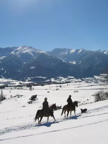 Les chevaux de la tramontane vous proposent des balades à cheval dans la neige. Grâce à des ferrures spéciale, aux chevaux de la tramontane nous pouvons vous proposez des sortie à cheval dans la neige allant de une heure à la journée complète.